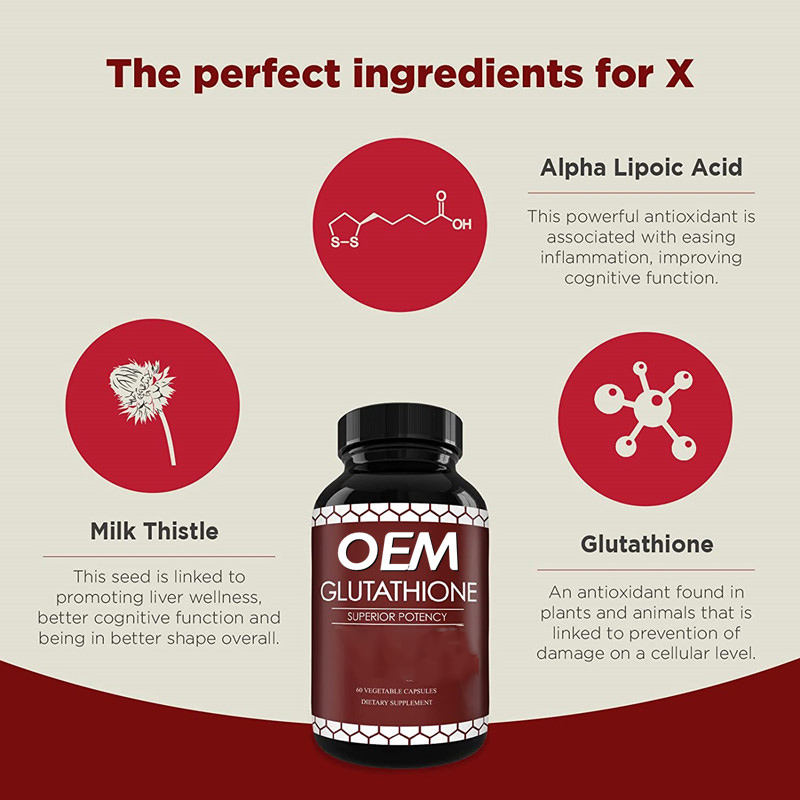 Cápsula de l-glutathion con logotipo personalizado, gelatina real orgánica blanqueadora, l-glutathione, 1000Mg, Reduce la melanina, l-glutathione