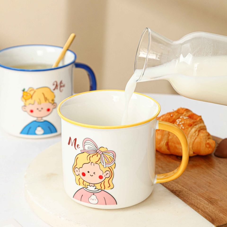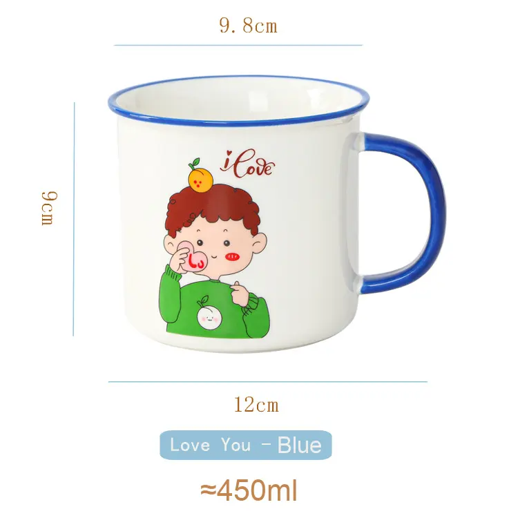 Taza de cerámica grande de 600ml con logotipo personalizado, bonita pareja de dibujos animados, estilo coreano, alto valor, Apto para lavavajillas, Asa de taza caliente para fiestas