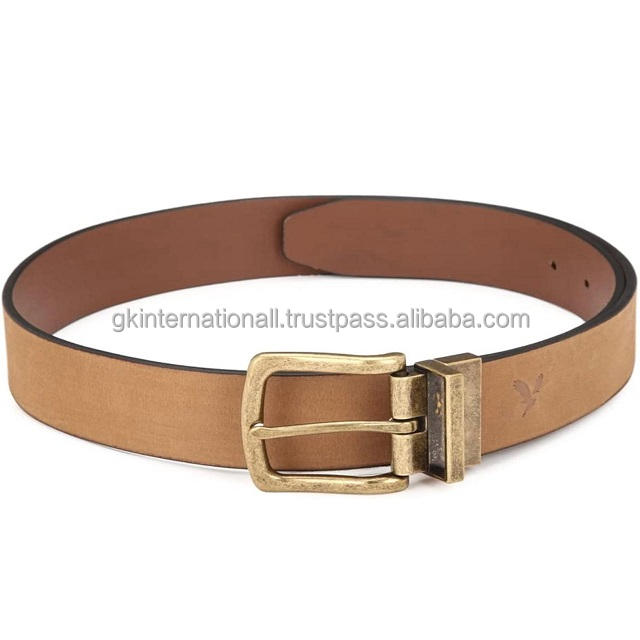 Cinturones y accesorios informales de cuero de grano completo marrón claro con logotipo personalizado a precio mayorista con hebilla de latón antiguo vintage