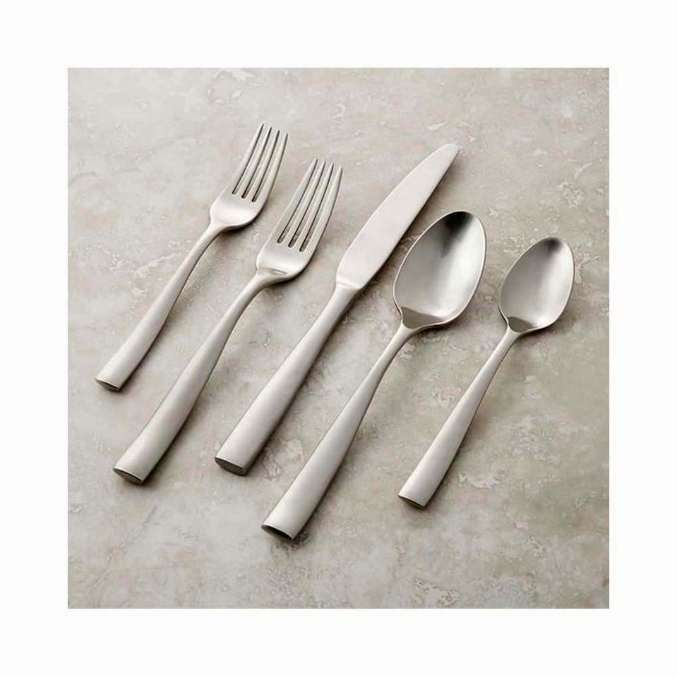 Mango de diseño rectangular plano con logotipo personalizado con juego de cubiertos de aspecto moderno plateado único
