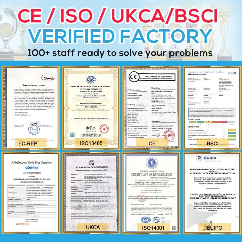 ISO9001,ISO13485,ISO14001,CE,EC-REP,UKCA,BSCI,SFDA