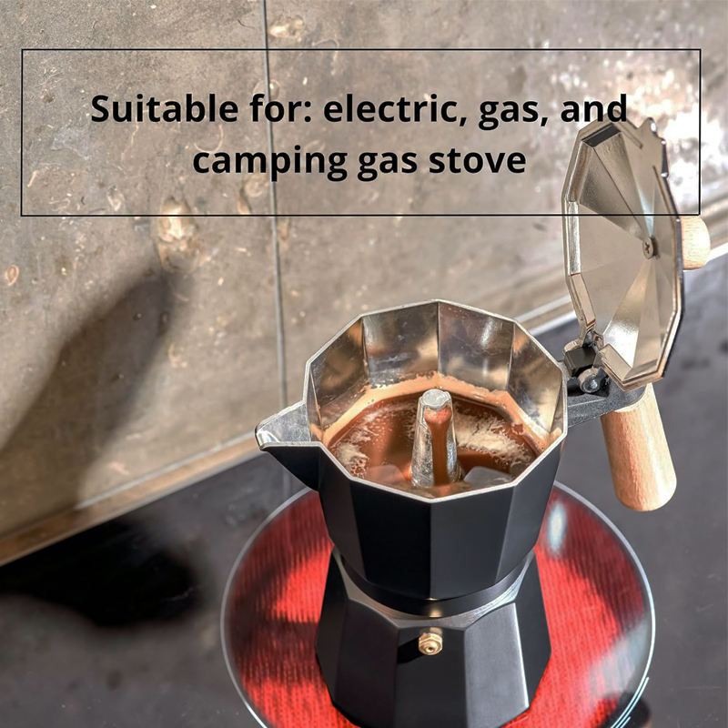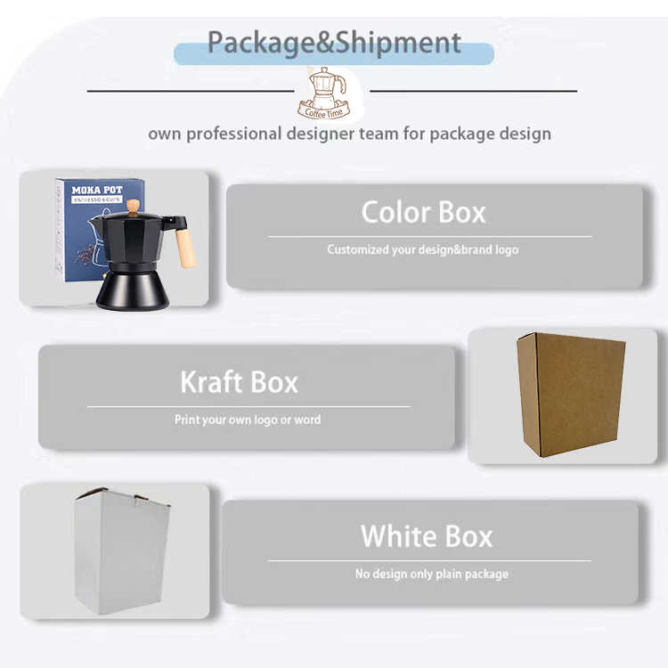 Logotipo personalizado OEM Single Value Black Italia Aluminio Moka Pot Espresso Cafetera