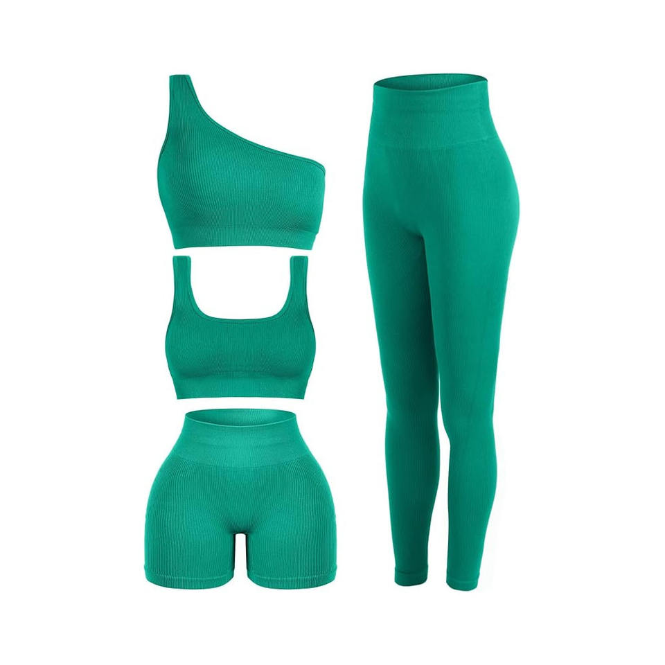 Conjunto de Yoga Ecológico para Mujer, Tallas Grandes, con Logotipo Personalizado, 4 Piezas, Ropa Deportiva en Color Sólido, Spandex/Poliéster