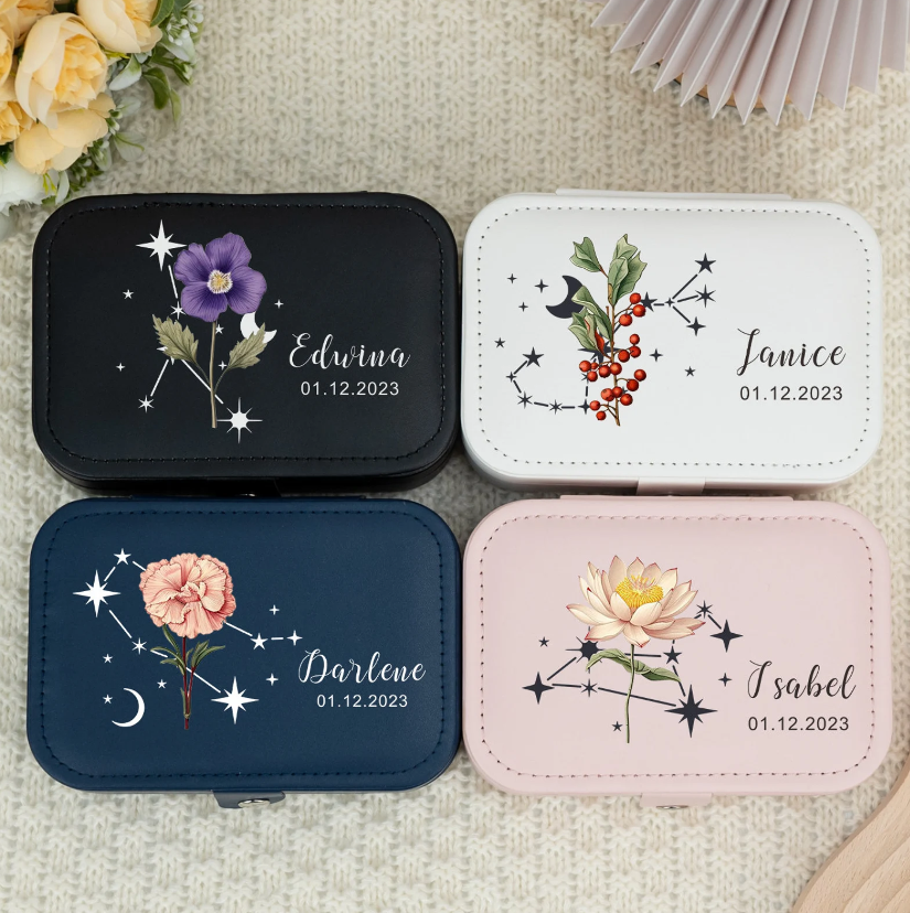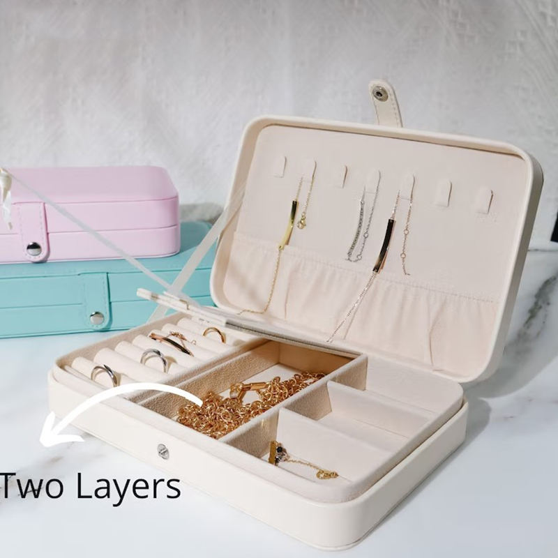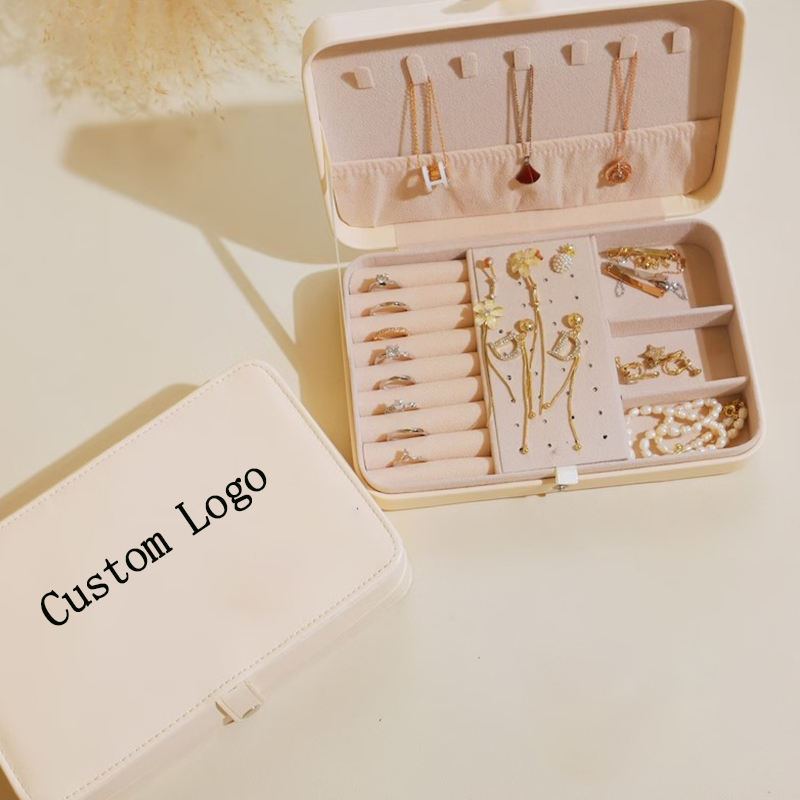 Caja de Joyería Portátil de Cuero PU con Logotipo Personalizado, para Anillos, Aretes y Collares, Caja de Almacenamiento y Exhibición de Joyería de Viaje