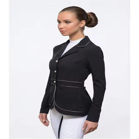 Chaqueta de equitación cómoda para mujer con estampado de logotipo personalizado, precio al por mayor, chaqueta de espectáculo de equitación más vendida