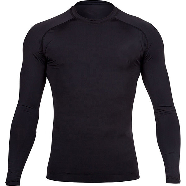 Logotipo personalizado impresión media manga cuello redondo secado rápido compresión Rash Guard para hombres en color negro y amarillo personalizado