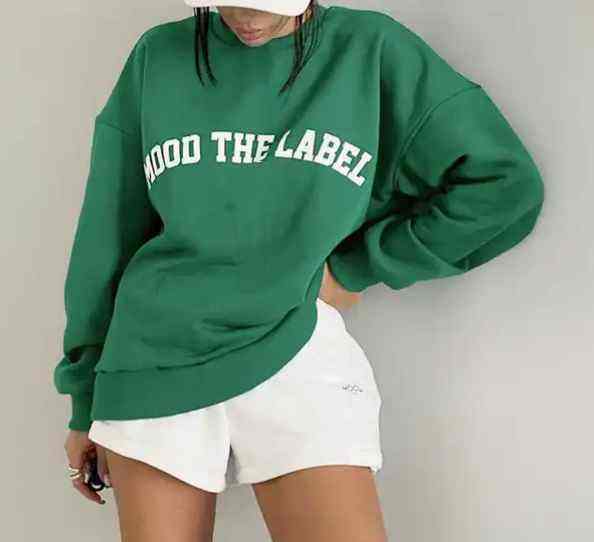 Conjunto corto de sudaderas por encima de la rodilla con cuello redondo informal para mujer, ropa de calle de fabricante personalizada con logotipo personalizado