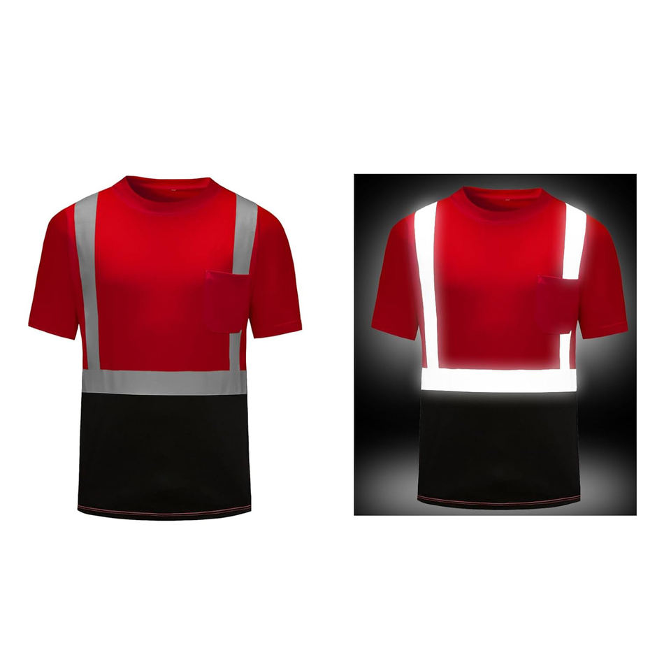 Camisa de seguridad de manga corta con cuello redondo y tira reflectante de alta visibilidad para trabajo en exteriores, con logotipo personalizado y tallas ajustables para hombre.