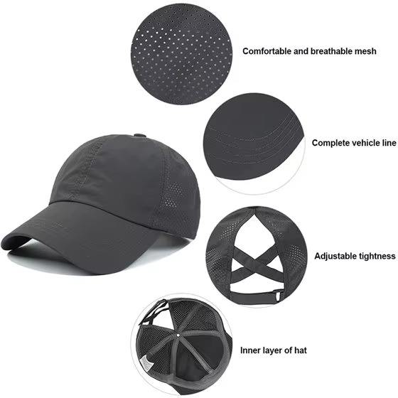Gorras de Béisbol Personalizadas con Logotipo, Color Sólido, Unisex, Secado Rápido, Deportivas, Transpirables, con Malla, para Negocios, con Orificio para Cola de Caballo, de 7 Paneles