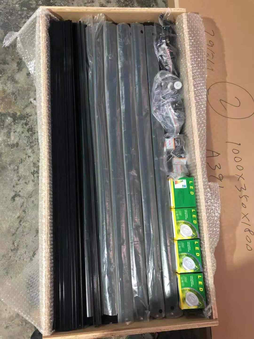 Knockdown package by cartons and air bubble foam. Safe for long-distance transportation.