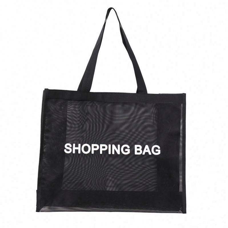 Bolsa de Compras de Malla Transparente Negra Personalizada con Logotipo, Bolsa de Almacenamiento para Playa y Viajes