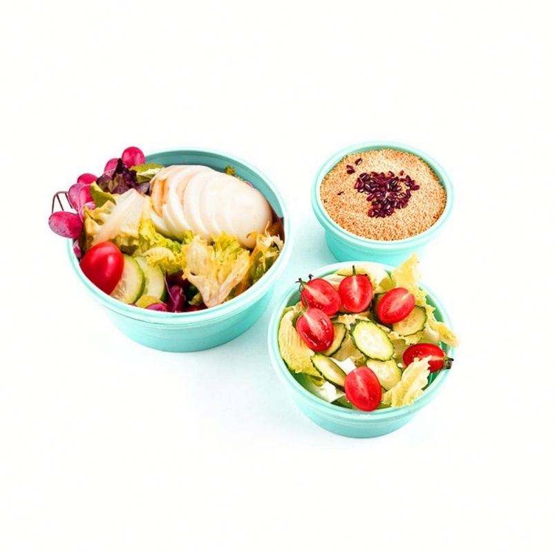 Nombre del artículo Contenedor de alimentos de silicona:Caja de almuerzo plegable de silicona redonda