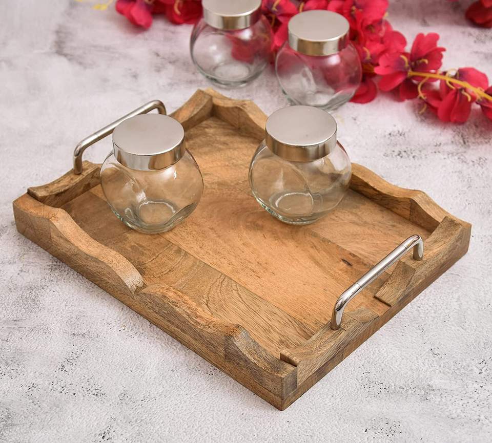 Bandeja de servir de madera con asas recortadas, bandeja de servir de madera para servir postres, bandeja de servir de madera con calidad de hotel a bajo precio