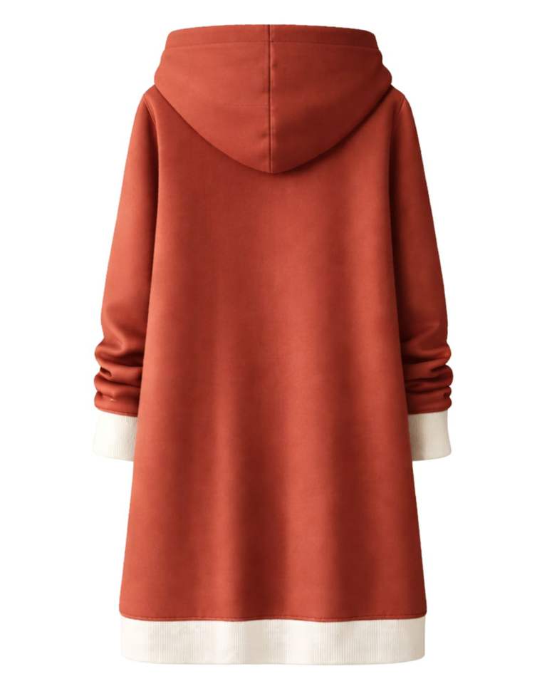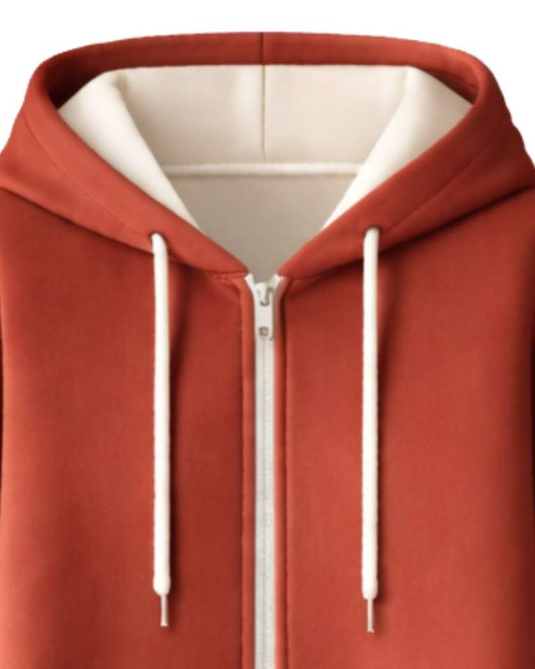 Sudadera con capucha larga personalizada con cremallera, color óxido, para mujer, abrigo de invierno con forro polar, informal, holgado, con bolsillos, OEM personalizado