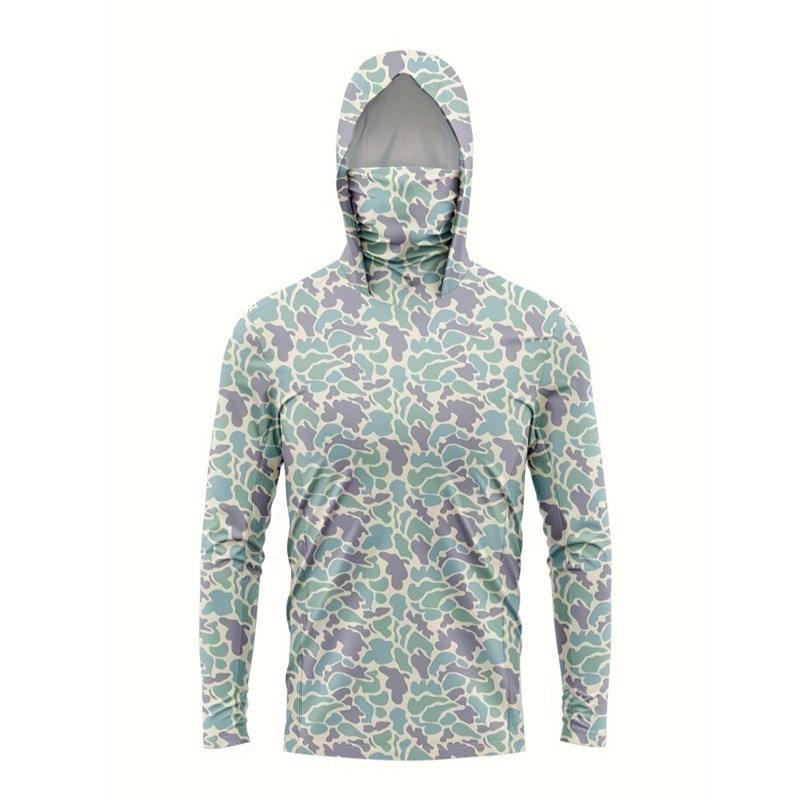 Personalizado bajo MOQ sublimación Impresión de secado rápido poliéster rendimiento pesca Sudadera con capucha UPF 50 camisa de pesca con capucha