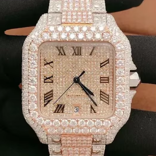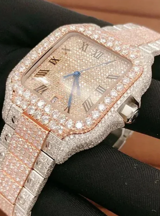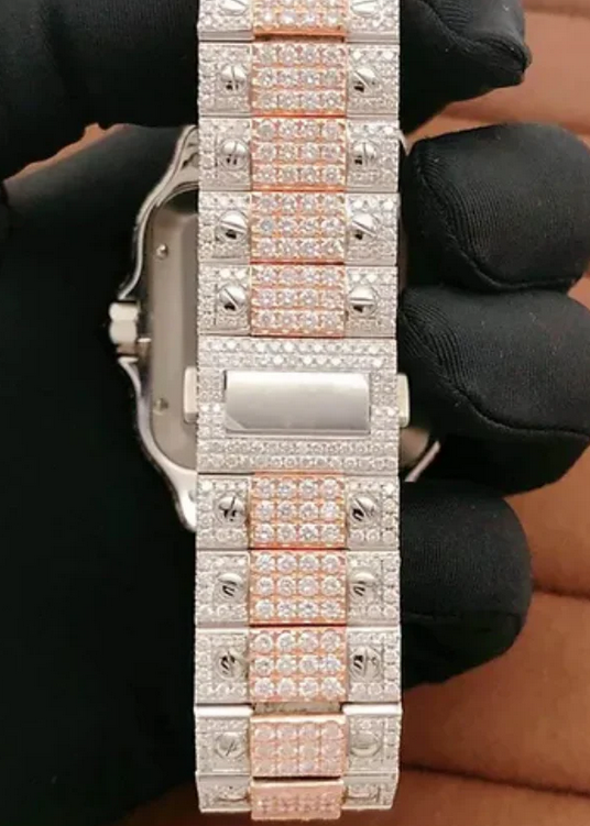 Reloj Personalizado de Lujo con Doble Tono, Cristal Rectangular de Moissanita, Caja de Acero Inoxidable, Movimiento Mecánico ETA, Resistente al Agua 10m