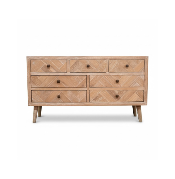 Cómoda de madera de color Pino moderna de lujo personalizada con patrón de espiga duradero para uso en la sala de estar del hogar