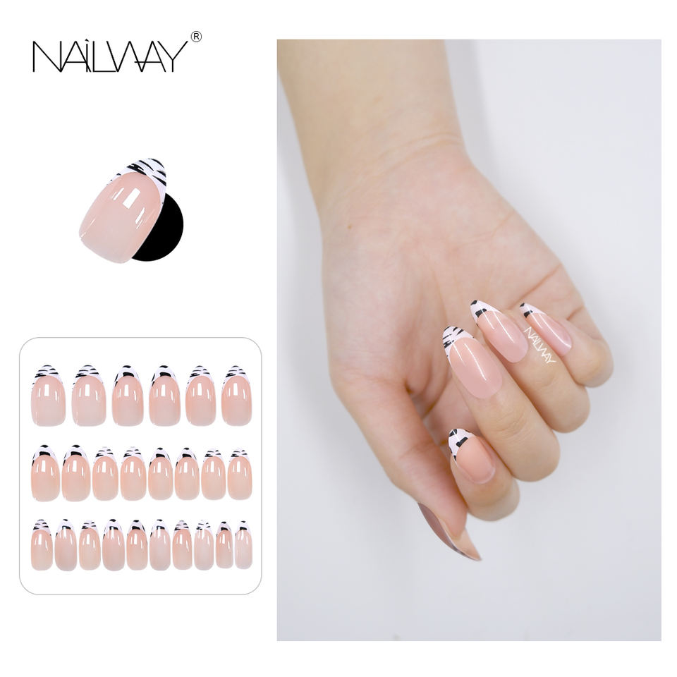 Uñas Postizas de Lujo Personalizadas con Diseño de Vaca, Puntas de Uñas Francesas, Uñas a Presión