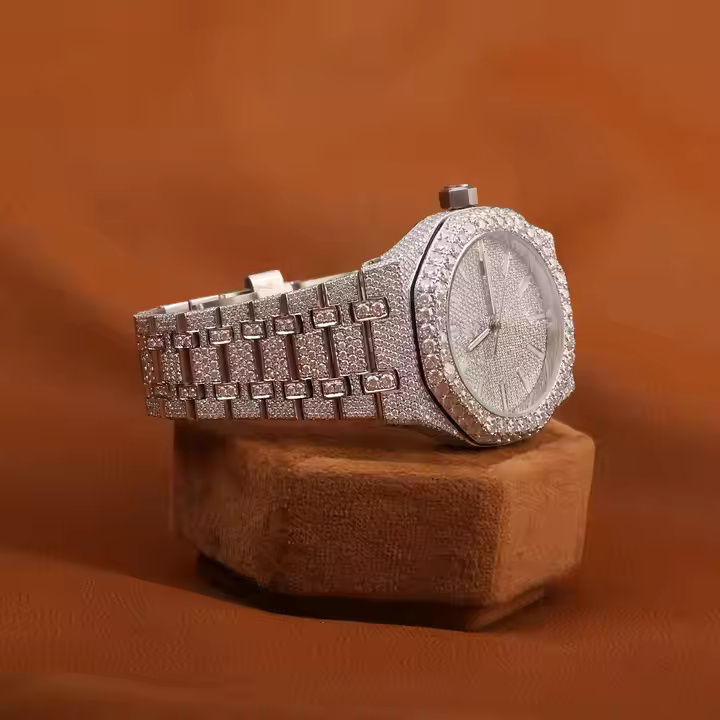 Personalizado de lujo de plata de laboratorio crecido diamante Hip Hop reloj de pulsera de alta calidad analógico de acero inoxidable antiguo totalmente helado