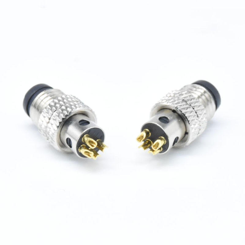 Conector M12 Personalizado, Código A, 4 Pines, Macho y Hembra, con Ranuras, Blindado, Impermeable IP67, Directo de Fábrica, Soldable, Modulable