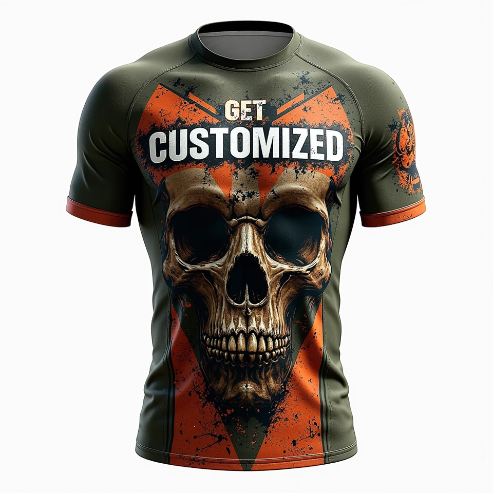 Protector Rash MMA personalizado diseñado para la durabilidad con ajuste de compresión y sublimación en ambos estilos de manga kimono de jiu jitsu