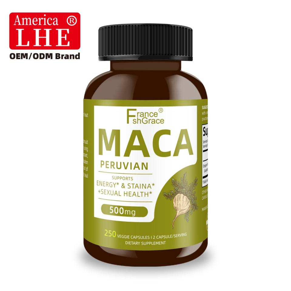 Cápsulas de Extracto de Raíz de Maca Personalizadas, 250 Unidades, para Apoyo de Energía y Resistencia, Enfocadas en la Salud y Vitalidad Masculina