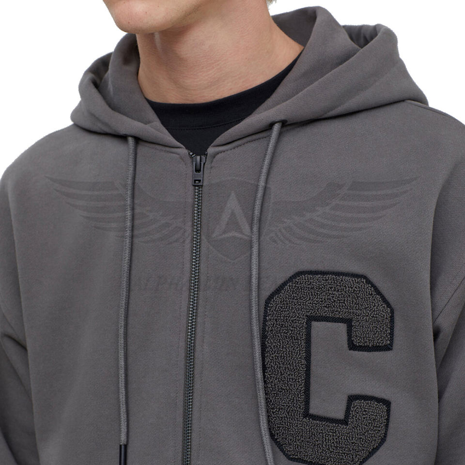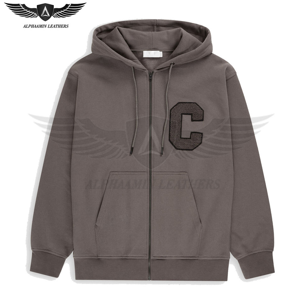 Personalizado hecho Chenille bordado carta cremallera Up College Hoodie transpirable poliéster algodón hombres sudaderas con capucha en tarifa al por mayor