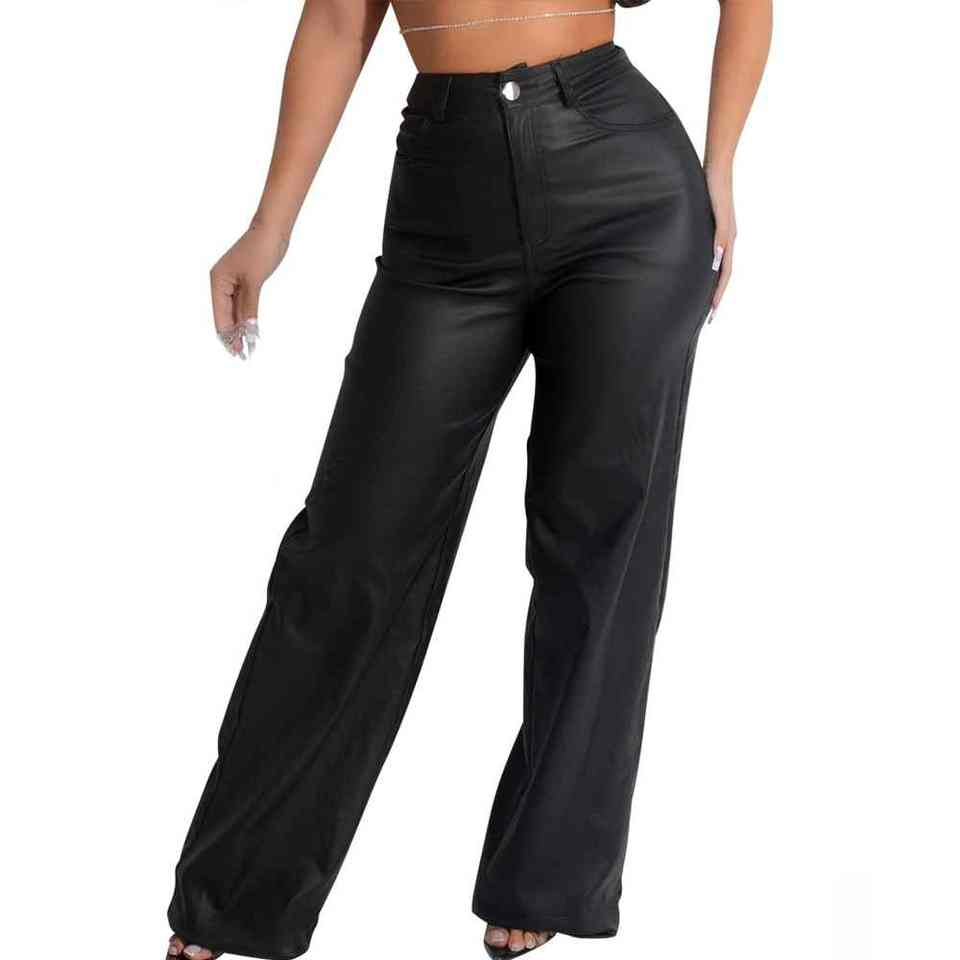 Pantalones de cuero PU de alta calidad personalizados para mujer, ropa de invierno, ajustados, planos, transpirables, cintura alta, cierre de cordón