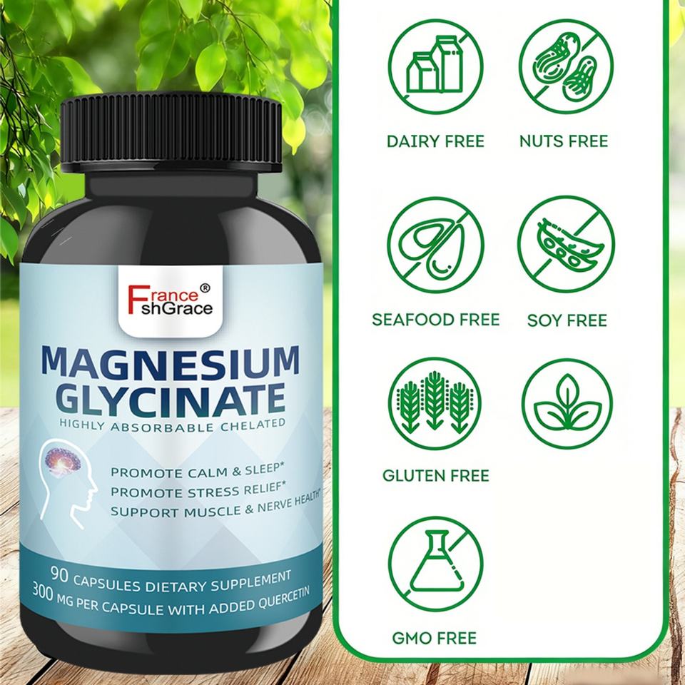 Cápsulas de Glicinato de Magnesio Personalizadas para Dormir, Calmar, Aliviar los Nervios y el Estrés en Adultos, Suplemento de Glicinato de Magnesio