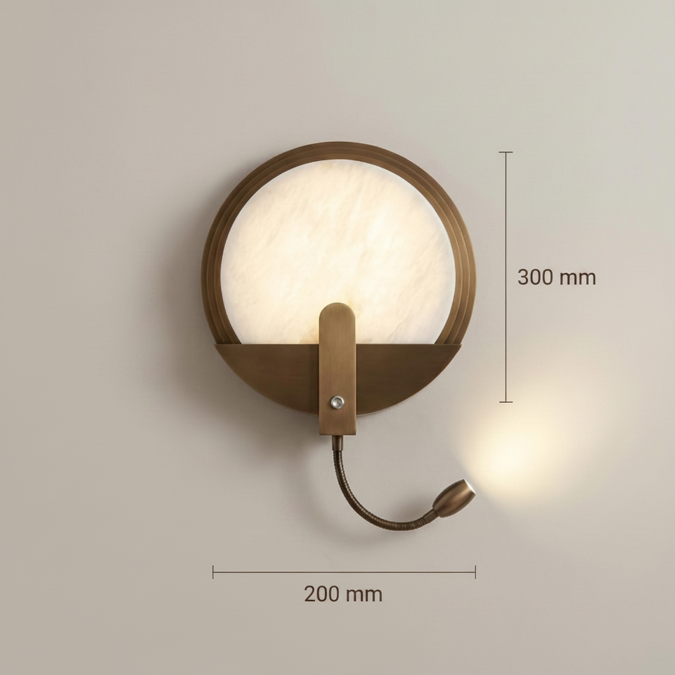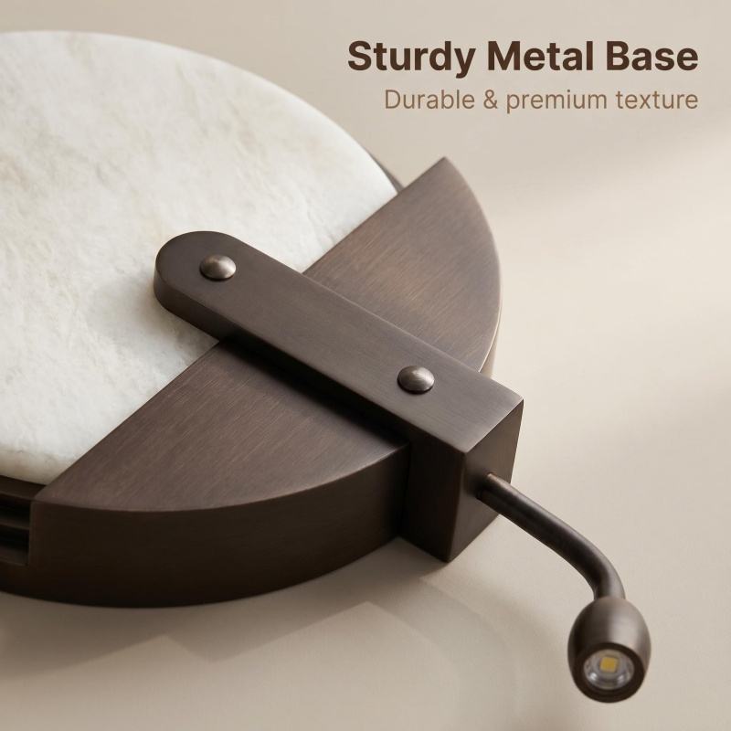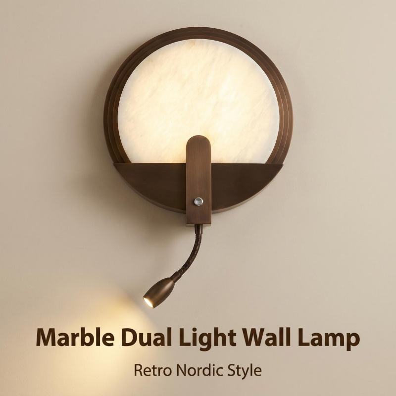 Lámpara de Pared LED de Mármol Personalizada, Base de Metal, Doble Fuente de Luz, Redonda Retro, para Proyectos Hoteleros, Lectura, Dormitorio