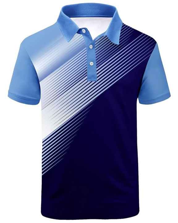 Camiseta Polo Personalizada para Hombre, Azul Claro y Azul Marino con Rayas Degradadas, Manga Corta, Cuello con Botones, Corte Ajustado Informal, Top de Verano
