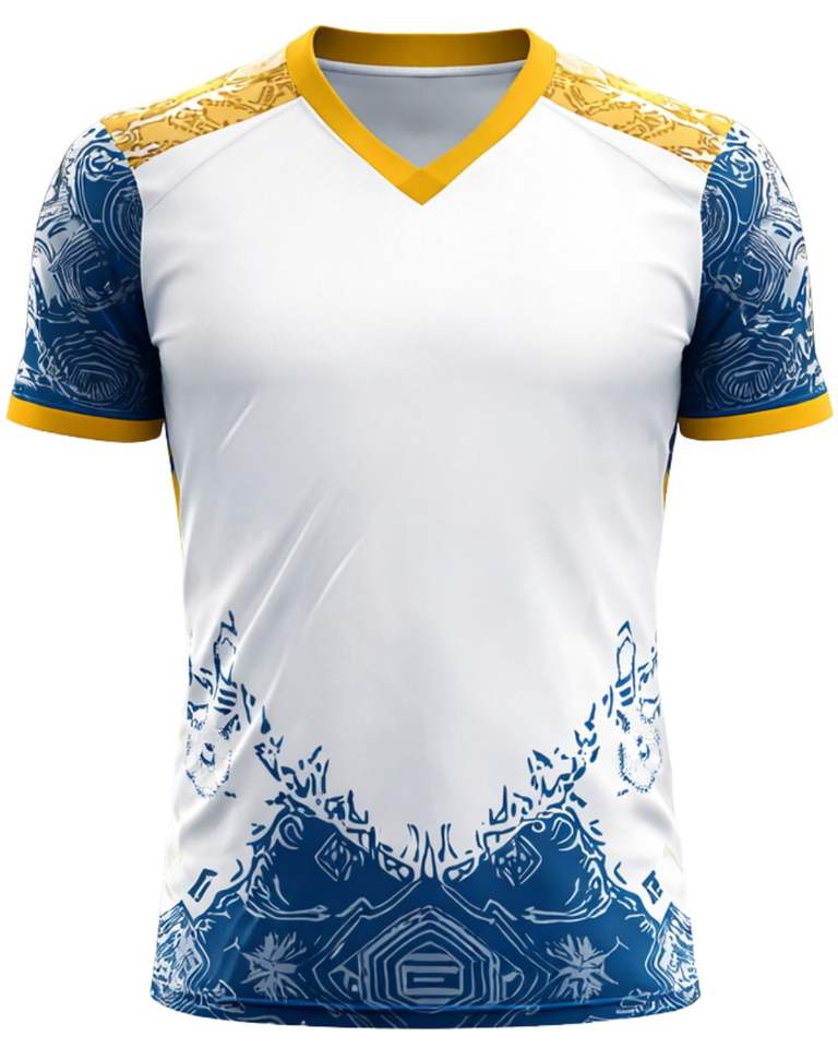Camiseta Deportiva Personalizada para Hombre con Cuello en V, Blanca, Azul y Dorada, Estampada, de Poliéster, Secado Rápido, Transpirable, Jersey Atlético, OEM Personalizado