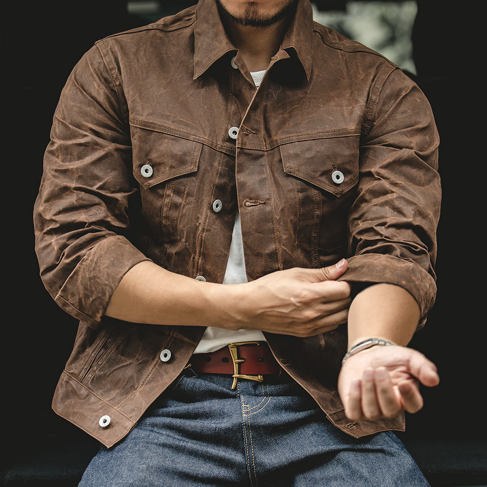 Chaqueta de Lona de Algodón Encerado, Estilo Vintage, Personalizada para Hombre, Corte Ajustado, Impermeable, para Correr, Caza y Safari