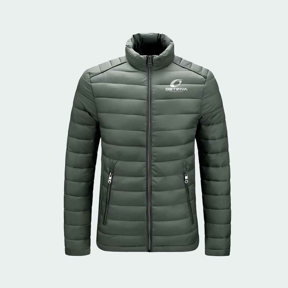 Chaqueta Acolchada de Lona Unisex Personalizada con Cuello Alto, Cierre de Cremallera, Logotipo Frontal, Resistente al Viento, para un Estilo Casual