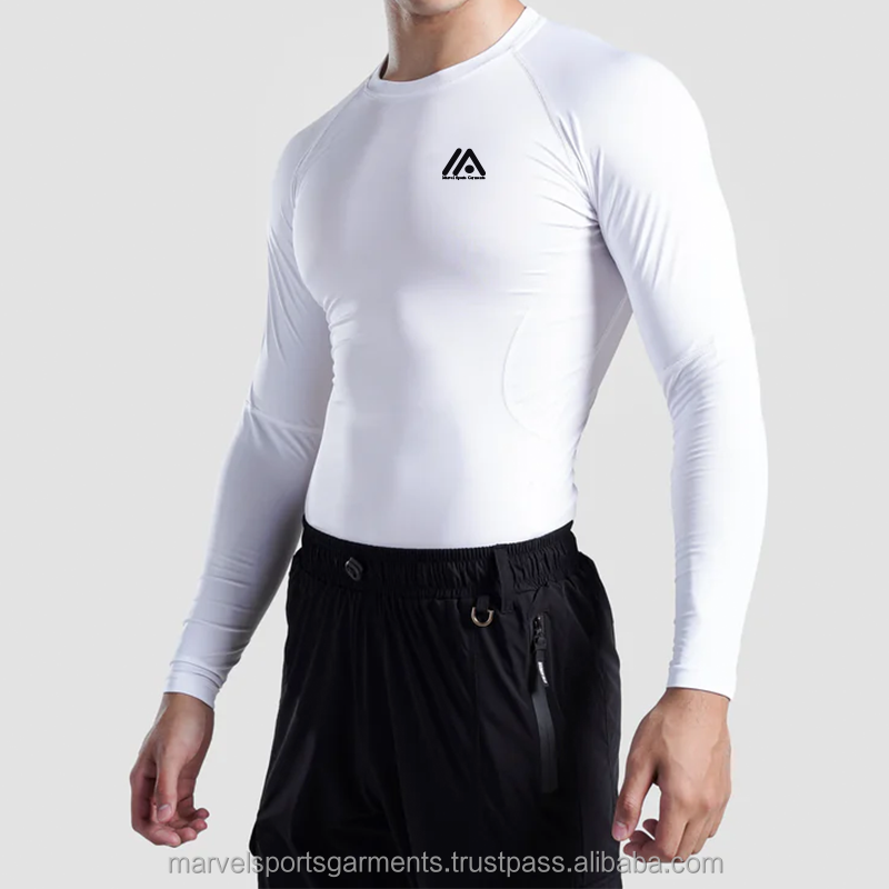Camisetas de gimnasio de compresión para hombre personalizadas, tejido de punto de primera calidad, suministro al por mayor del fabricante de Pakistán