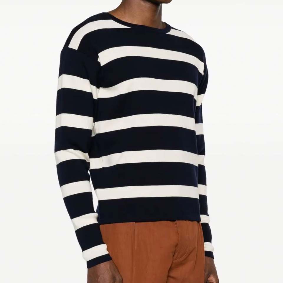 Suéter personalizado de lana de punto sólido a la moda de invierno de algodón a rayas para hombre