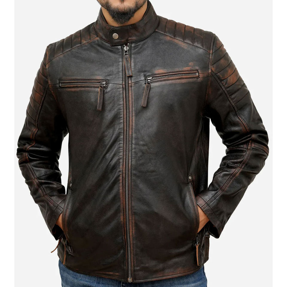 Chaqueta de cuero genuino para hombre personalizada estilo bombardero con cremallera para uso en motocicleta ofrecida con servicio OEM