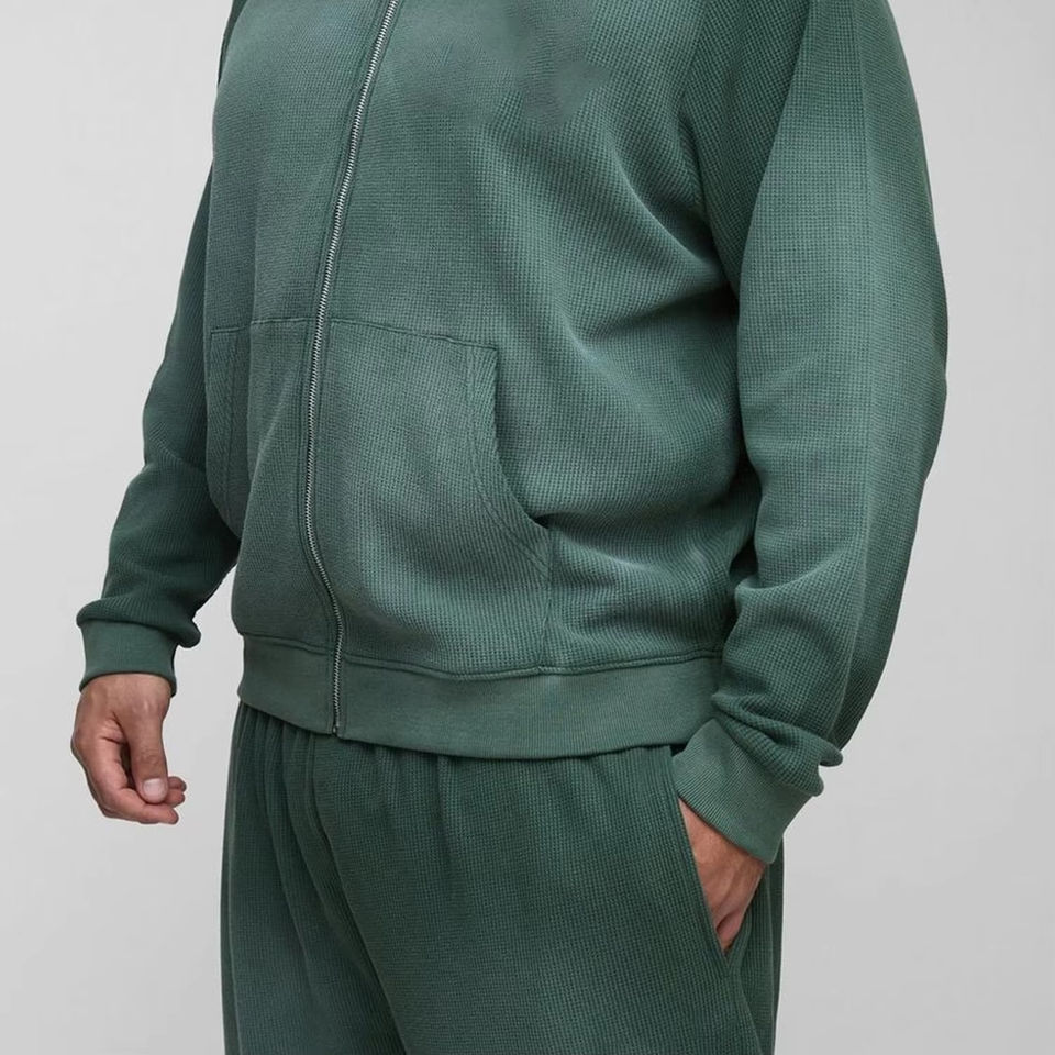 Chándales Personalizados para Hombre con Capucha y Cremallera de Alta Calidad, Estilo Holgado, Lavado Ácido, Decoloración Solar, 100% Algodón Felpa, Diseño de Logotipo Personalizado, Invierno