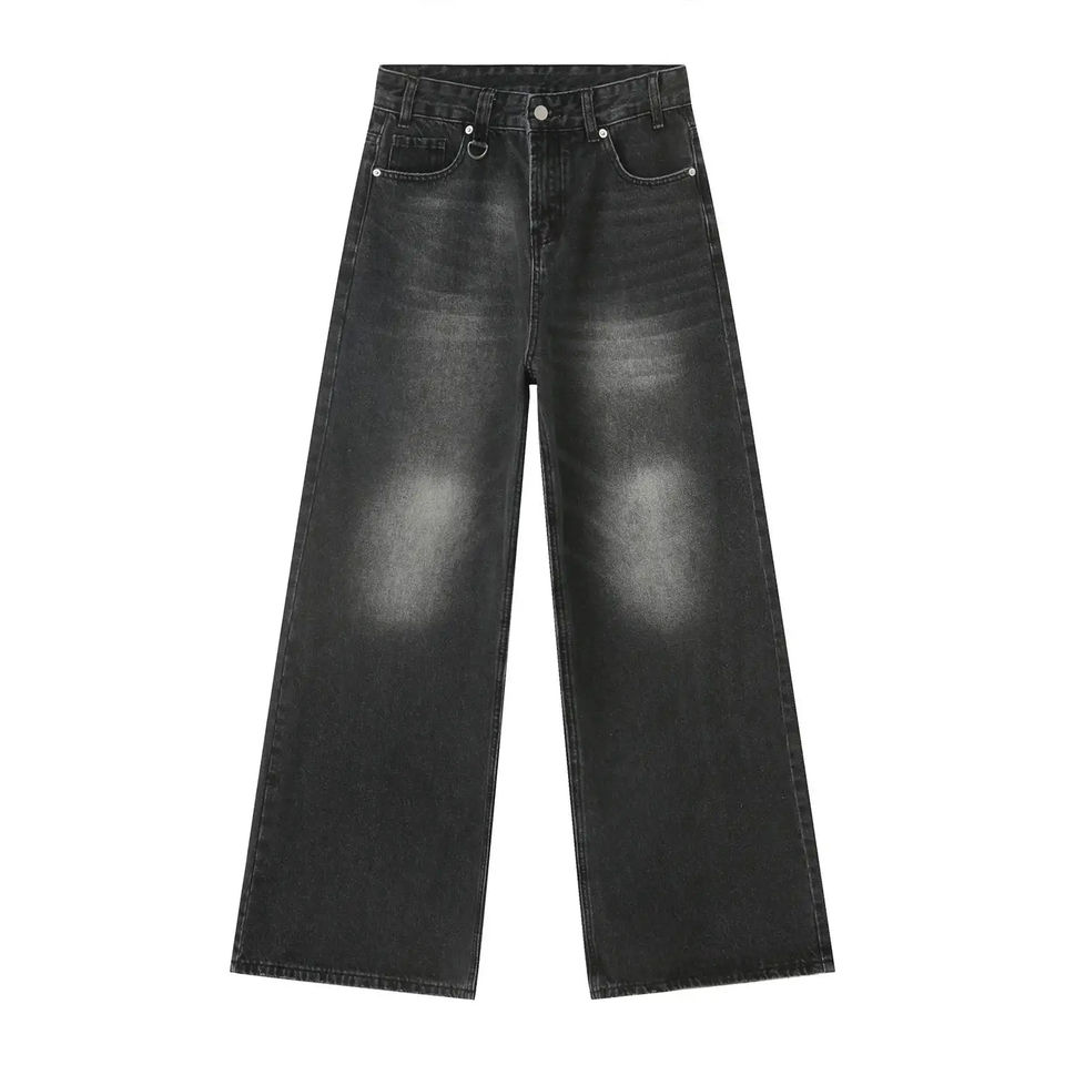Pantalones vaqueros personalizados para hombre, ropa de calle, pantalones vaqueros informales de pierna ancha de Hip Hop, pantalones vaqueros holgados rectos holgados lavados a la piedra para hombre