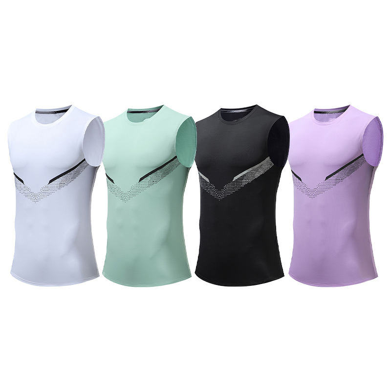 Camiseta sin mangas de poliéster personalizada para hombre, transpirable, de punto, para entrenamiento en el gimnasio y actividades al aire libre.