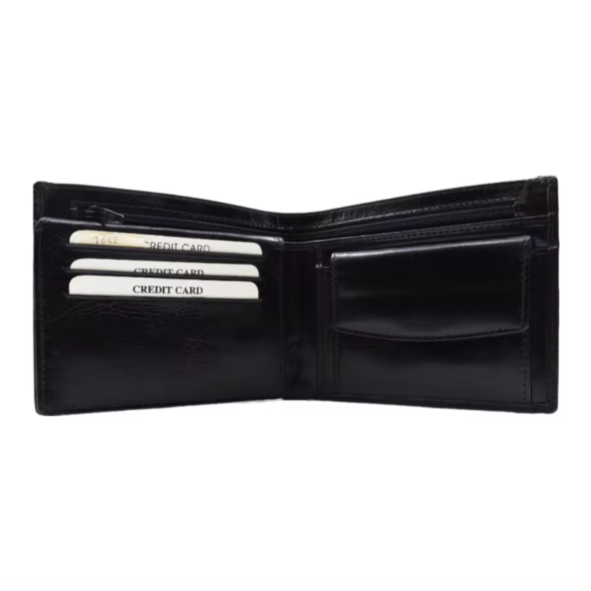 Cartera de cuero negro genuino de calidad superior personalizada para hombre, monedero hecho a mano, ranuras para tarjetas negras, bolsillos traseros personalizados