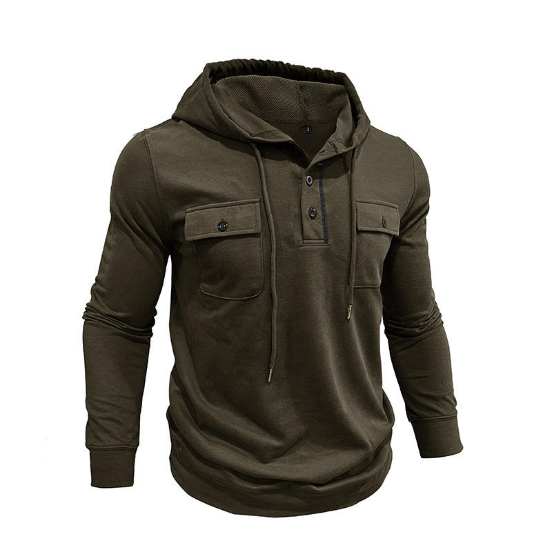 Sudadera con capucha ajustada de dos botones para hombre personalizada con capucha de color sólido para estampado de logotipo