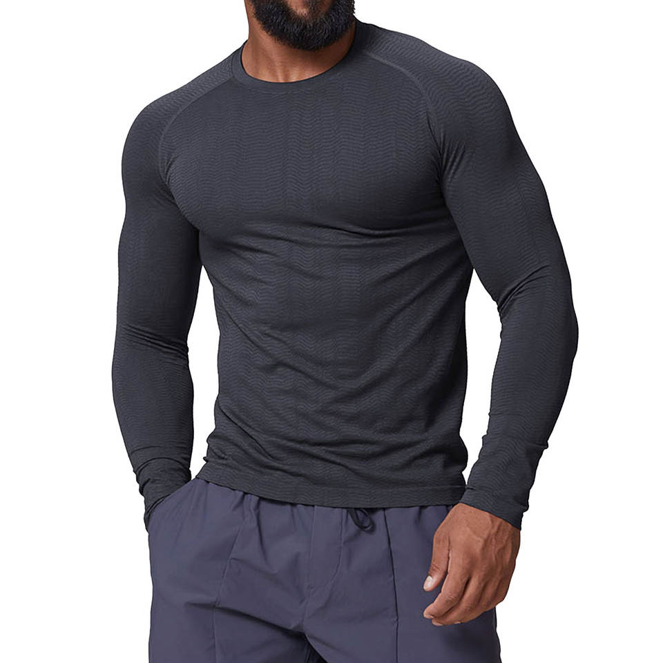 Camiseta Deportiva de Compresión de Color Sólido Personalizada para Hombre, Camiseta de Manga Larga Cómoda para Correr, Impresión de Logotipo Personalizado