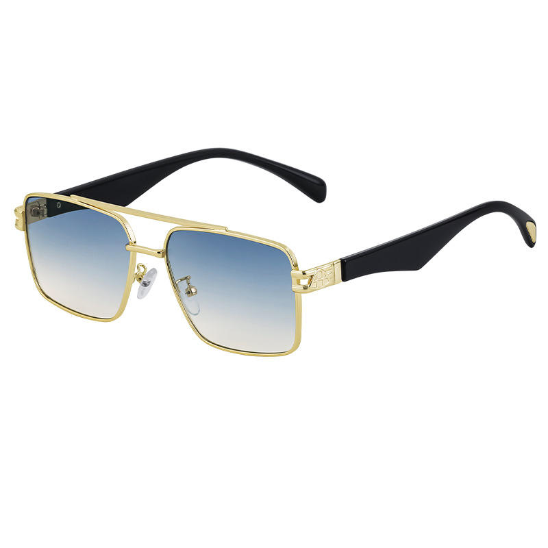 Gafas de Sol Cuadradas Personalizadas para Hombre, Doradas y Negras, Lentes de PC con Protección UV400, Estilo Instagram, para Conducir al Aire Libre, Modernas, con Doble Puente
