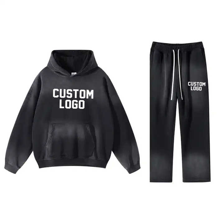 Conjunto Deportivo Personalizado Unisex 100% Algodón Transpirable, Pantalones Deportivos Ajustados de Alta Calidad con Lavado Ácido, Conjunto de 2 Piezas con Costuras Decorativas