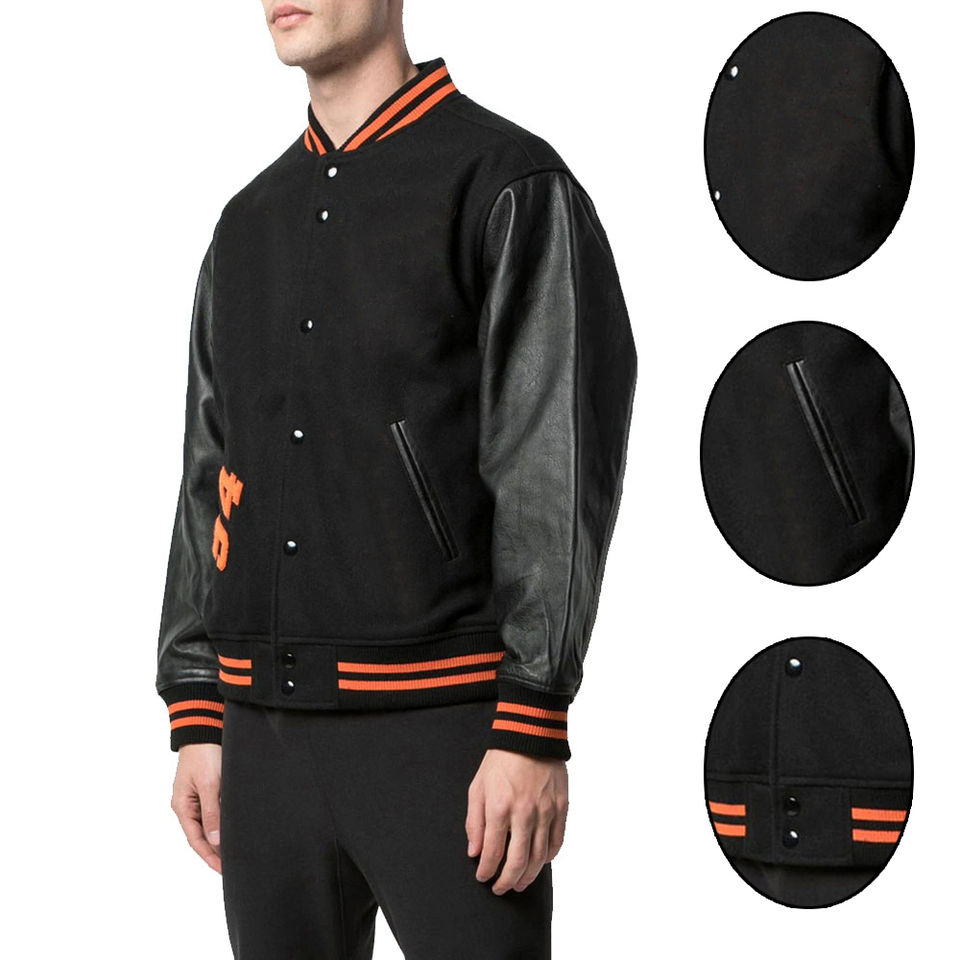 Product Name:Men Wool Varsity Jackets With Leather Sleeves