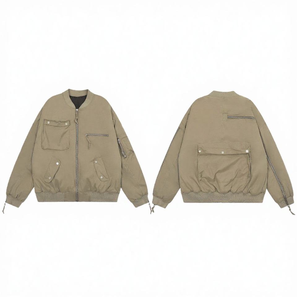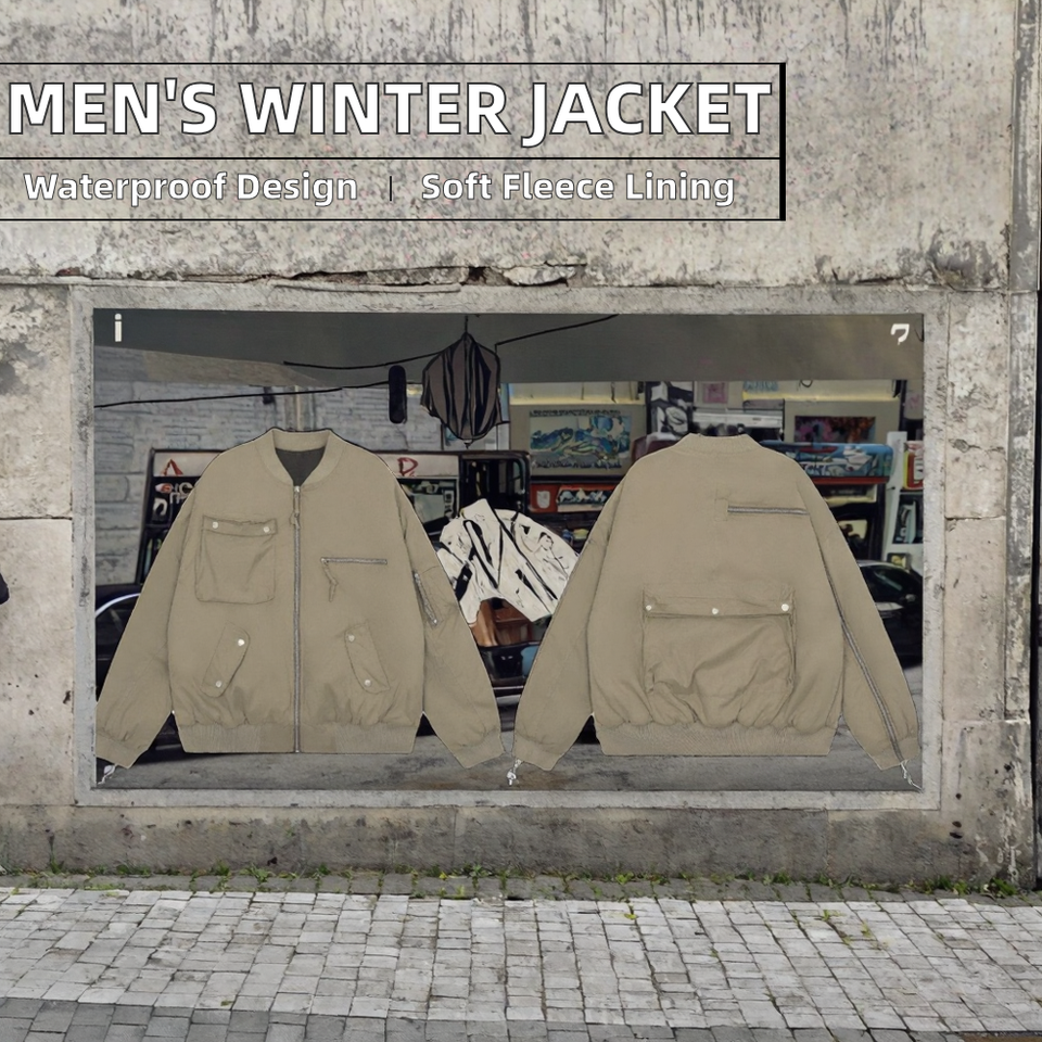 Chaqueta Bomber de Invierno Personalizada para Hombre, con Forro Polar, Cierre de Cremallera, Estilo Casual, Holgada, Sin Cuello, Servicio OEM, Ecológica, Resistente al Viento