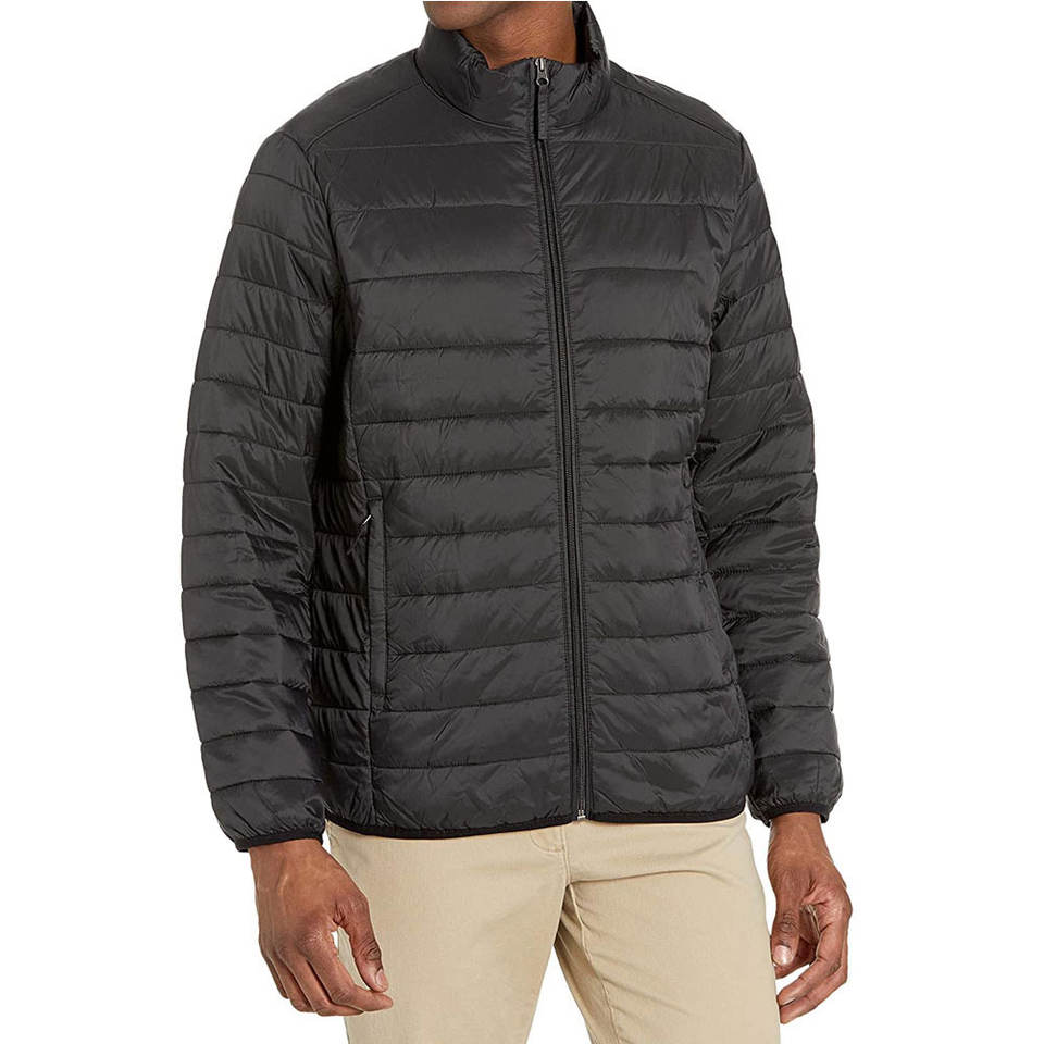 Chaqueta de burbuja ligera de invierno personalizada para hombre, capucha de media manga desmontable de lona de alta calidad con cuello levantado