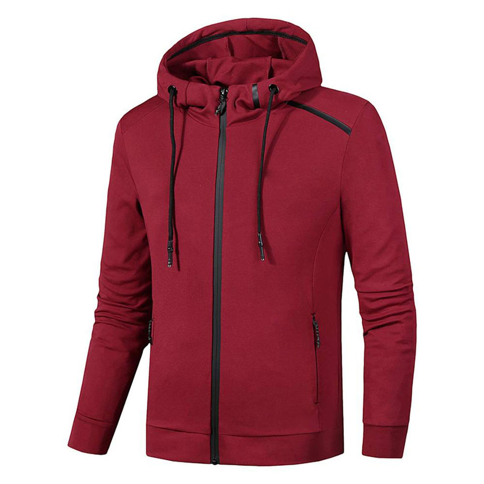 Sudaderas con Capucha Personalizadas para Hombre, de Invierno, de Poliéster/Algodón, con Cierre de Cremallera y Diseño de Bloques de Color en Contraste