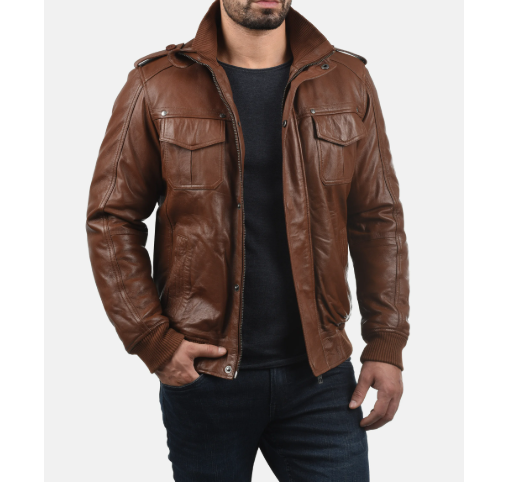 Chaquetas de cuero personalizadas para hombre Chaqueta de piel de oveja con estilo en marrón y negro para Borde de moda